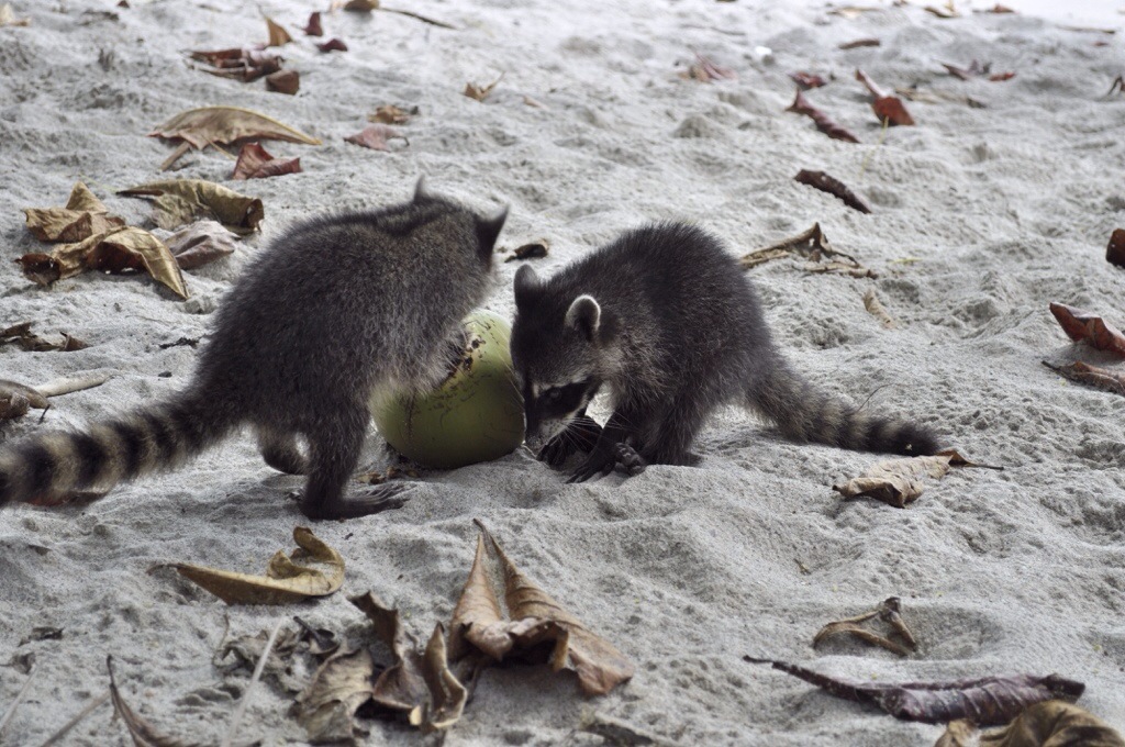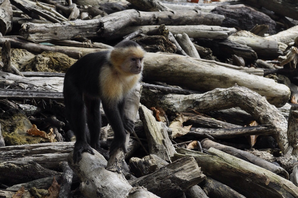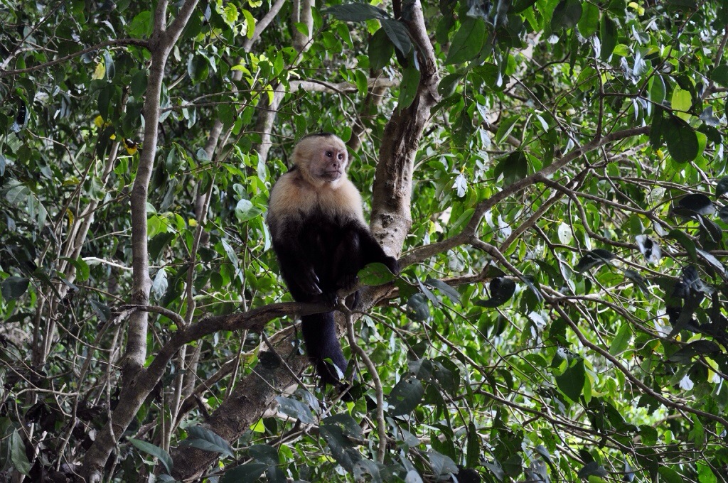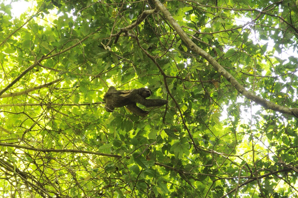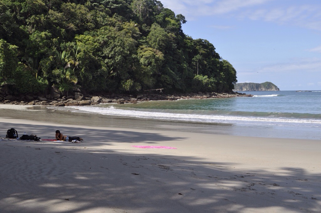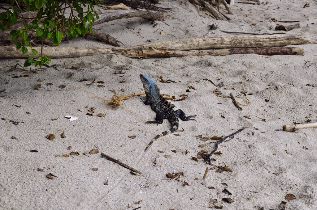 Nach nur einer kurzen Nacht in Jaco sind wird zu viert nach Manuel Antonio gefahren. Leider war das Wetter wieder einmal nicht so toll. In Manuel Antonio angekommen, waren wir alle etwas enttäuscht. Bei Regen resp. vielen Wolken sieht Manuel Antonio nicht gerade schön aus. Im Lonely Planet hatten wir ein Backpacker gefunden, dass günstig ist und ziemlich nah vom Strand und vom Nationalpark. Das Costa Linda Backpacker hatte von aussen noch einen netten Eindruck gemacht, die Zimmer waren aber seeeehr einfach. Vier Betten und kaum Platz für unser Gepäck. Die Gemeinschaftsdusche/-toilette war auch etwas gewöhnungsbedürftig. Kurz gesagt, eine Absteige. Wir haben uns schlussendlich aber doch für die $10 Unterkunft entschieden. Wir packten unsere Strandsachen und fuhren mit unserem Auto südlicher der Küste hinunter. In Dominical hatten wir etwas leckeres gegessen und haben uns danach am Strand entspannt. Die Hauptaktivität in Dominical ist Surfen, deshalb konnten wir dort auch nicht so gut baden. Vor dem Sonnenuntergang waren wir wieder zurück in Manuel Antonio. Im Restaurant El Avion hatten wir uns beim Sonnenuntergang einen Drink und Nachos gegönnt. Nach dem Abendessen hatten wir uns einen Film auf dem Laptop angeschaut und haben uns dann in unsere muffige Höhle zurückgezogen. Am nächsten Tag sind wir bereits um 7:30 Uhr im Nationalpark Manuel Antonio herumspatziert. Wir hatten von vielen gehört, dass der Park sehr beliebt ist und um 10:00 Uhr die meisten Besucher ankommen. So hatten wir Glück und hatten die schönen Strände anfangs noch für uns alleine. Der Nationalpark Manuel Antonio ist mit 7 km² einschliesslich kleine Inseln einer der kleinsten Naturparks Costa Ricas. Seine grosse Artenvielfalt und beachtliche Vegetation verdankt er den guten klimatischen Bedingungen. Hier leben 352 Vogelarten, 109 Schmetterlingsarten und 364 Pflanzenarten. Der Nationalpark Manuel Antonio stellt keine besonderen Anforderungen an die Fitness seiner Besucher, denn es gibt hier grösstenteils bequeme Wege. So steht es im Reiseführer. Jedoch war es verdammt huere heiss. Und der eine oder andere Anstieg war nicht ganz einfach. Wir hatten alle so heiss und wir schwitzten aus all unseren Poren. Unsere Kleider waren nass. Aber wir wurden mit einem guten Blick über den Ozean belohnt und wir entdeckten einige Tiere.