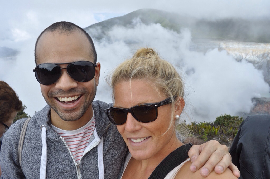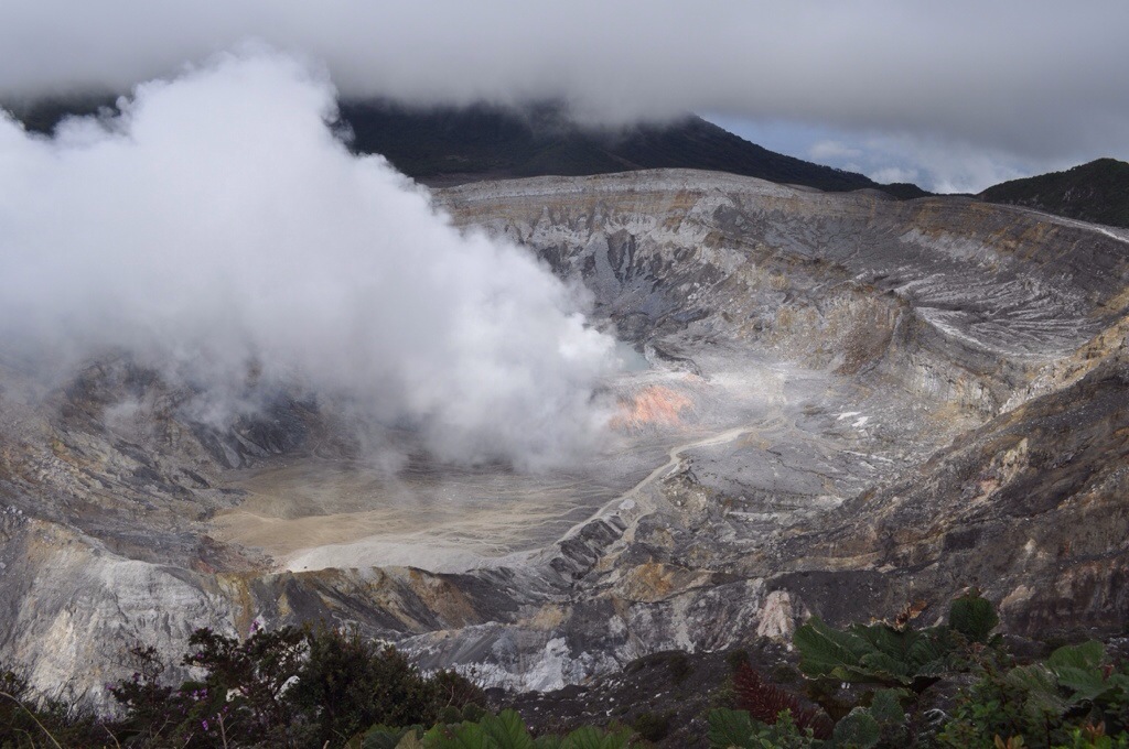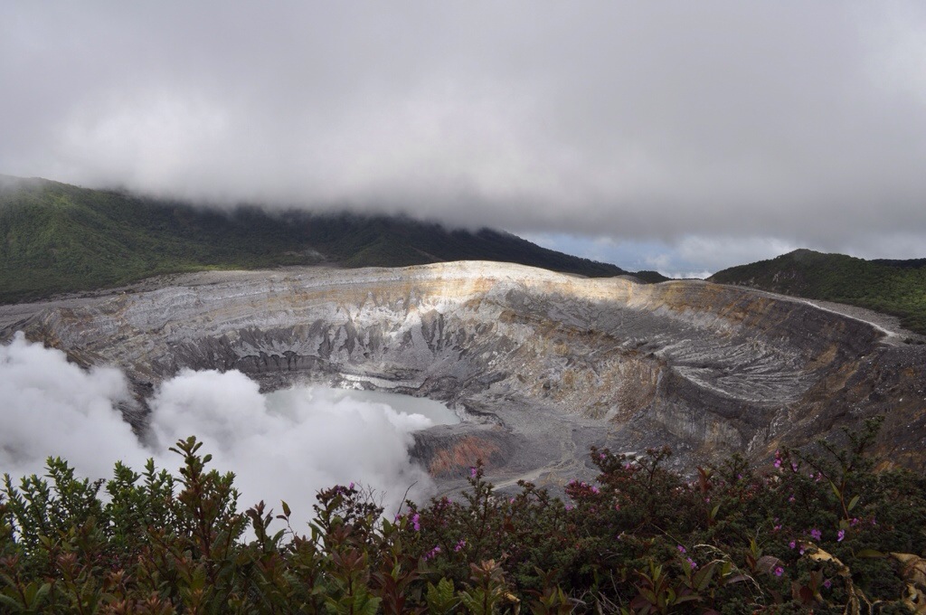 Wir starteten unsere Reise mit dem Poas Nationalpark. Das Herzstück dieses Nationalparks ist der 2708m hohe Vulkan Poas. Der Vulkan liegt ca. 50 km/ ca. 1,5 Std. von San José entfernt. Der Hauptkrater des Poas hat einen Durchmesser von ca. 1,5km und eine Tiefe von ca. 300m. Ab und zu steigen Schwefelwolken aus dem Krater auf. Die vulkanischen Gase verhindern jegliche Vegetation in Windrichtung. Zum Glück hatten wir gutes Wetter und konnten einen Einblick in den Krater erhaschen. Das gelingt leider nicht allen, gäll Mami? 😉 Der Vulkan Poas liegt darum häufig unter Wolken.