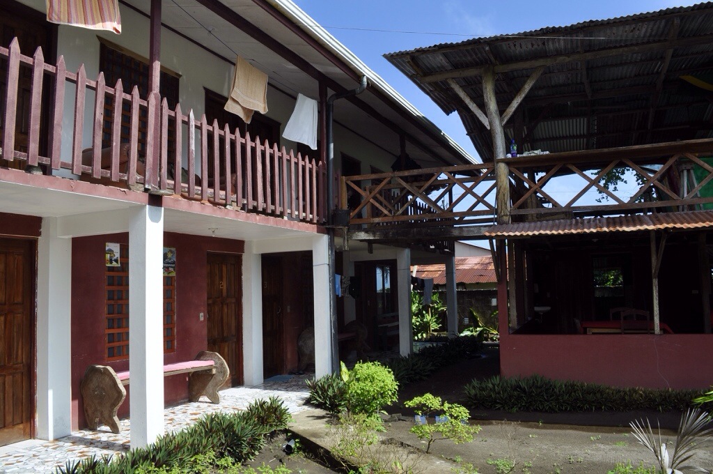 Da wir bereits in San Jose das Miss Miriam 2 Hostel gebucht hatten, mussten wir uns nicht mehr um eine Unterkunft kümmern. Wir wurden sogar bei der Bootsanlegestelle erwartet und abgeholt. Jedoch nicht vom Hotel persönlich, sondern von Castor. Er ist schon seit 22 Jahren als Guide in Tortuguero tätig und steht auch im Lonely Planet. Er meinte natürlich auch, dass wir die Tour lieber bei ihm hätten buchen sollen. Zwei Schweizerinnen waren auch im selben Boot und hatten auch das Miss Miriam 2 Hostel gebucht. Wir sind dann zu viert im Dörfchen herumspatziert. Einmal den kleinen Weg hinauf und runter und schon hat man Tortuguero gesehen 😉 Da wir alle Lust auf ein Bier hatten, sind wir in ein kleines, herziges Café. Kurzerhand später ist noch ein Paar aus Holland dazugestossen. Sie waren ebenfalls im selben Boot. So hatten wir innert kürzerster Zeit einige Biere intus. Da das Paar um 18:00 Uhr auf eine Tour ging, hatten wir uns alle um 20:30 Uhr zum Abendessen verabredet. Da wir jedoch alle sehr müde waren und am nächsten Tag eine Tour vor uns hatten, sind wir nach dem Essen ins Hostel zurück.