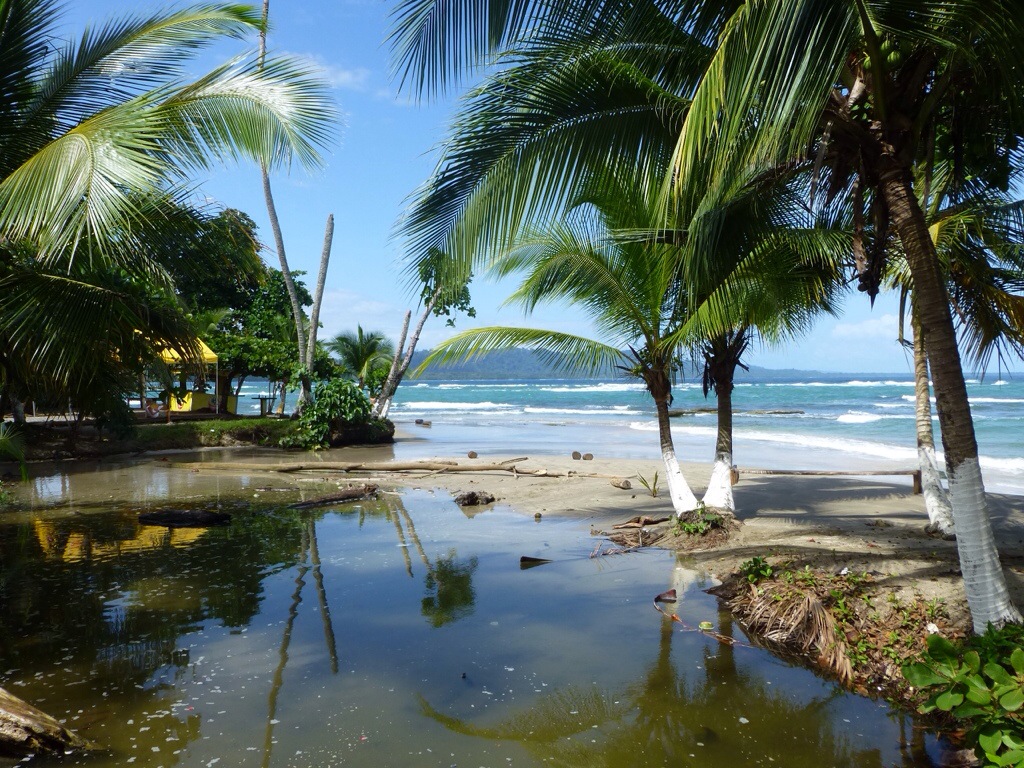 Nach Tortuguero sind wir am 30.12. in Puerto Viejo angekommen und haben Claudia getroffen. Wir haben uns ein 3-Bett-Zimmer in der Coco Loco Lodge für 2 Nächte gebucht. Wir hatten sehr viel Glück, dass wir noch ein Zimmer gefunden haben, denn alles andere war in dieser Zeit bereits ausgebucht. Solltet ihr auch einmal über den Neujahrswechsel an so einem Ort sein, dann kümmert euch früh genug um ein Hotelzimmer! 😉 Puerto Viejo befindet sich im Südosten von Costa Rica an der Karibikküste.