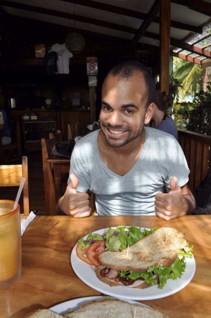 Wie bereits erwähnt hatte es am 1.1. den ganzen Tag nur geregnet. Mit grosser Hoffnung gingen wir ins Bett und hofften, dass am 2.1. die Welt schon wieder viel besser aussieht. Am Morgen danach regnete es zum Glück nicht mehr und die Sonne kam dann später auch noch hervor. So haben wir uns nach dem Playa Cocles & Playa Manzanillo im Bread & Chocolate verköstigt. Dieses Restaurant hatte uns Claudia gezeigt und ich kann es auch nur weiterempfehlen. Da gibt es extrem gutes Frühstück und sonstige leckere Süssigkeiten für den kleinen Hunger. Danach sind wir nochmals an den Strand, diesmal jedoch an den Playa Negra. Hier waren die Wellen etwas weniger stürmisch und somit konnten wir entspannter ins Wasser. Noch vor dem Sonnenuntergang sind wir noch einwenig in Puerto Viejo herumspatziert und haben uns die Lokalitäten bei Tageslicht angeschaut. Bevor es wieder zurück nach Cahuita ging, haben wir uns im Restaurant Flip Flop ein leckeres Curry gegönnt.