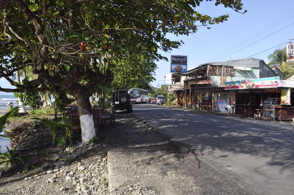 Puerto Viejo ist übrigens ein beliebter Zwischenhalt auf dem Weg zu den famosen Inseln „Bocas del Toro“ in Panama. So auch für uns. Von hier aus sind es nur noch etwa 50 Kilometer bis zur Grenze bei Sixaola. Um 10:00 Uhr sollte die Autovermietung unser Auto abholen kommen – Betonung auf ’sollte‘! Ich hatte vorher meine Colones in Dollares bei der Bank gewechselt und das Busticket organisiert. Nachdem die Tante von der Autovermietung um 10:45 Uhr endlich kam erwischten wir den Bus um 11:00 Uhr glücklicherweise noch rechtzeitig. Die Fahrt war nur ein wenig heiss und etwas ungemütlich, ansonsten klappte alles bestens.