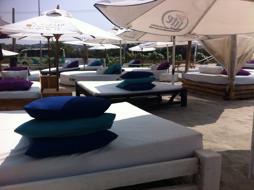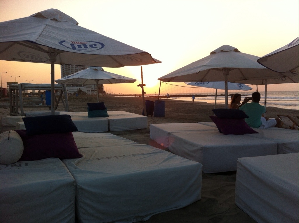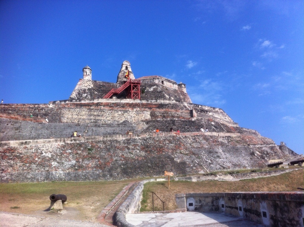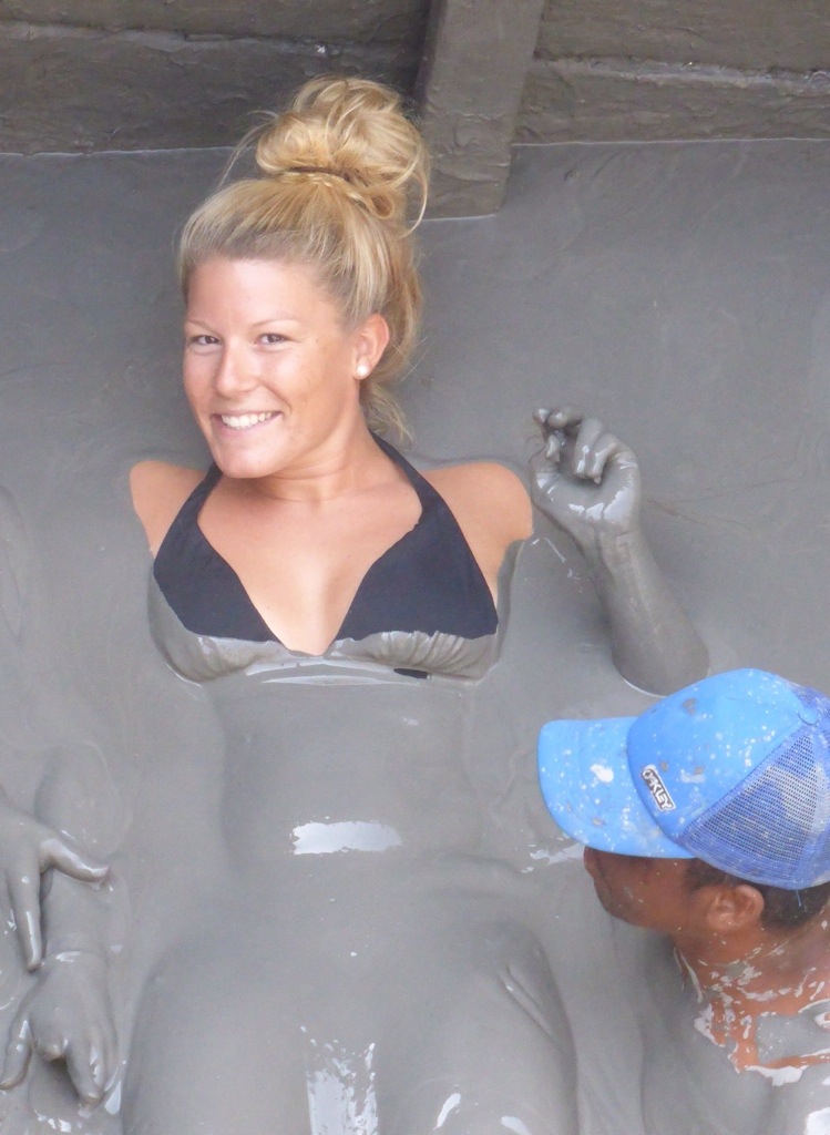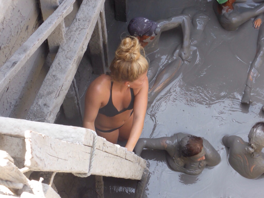Am nächsten Tag waren wir noch immer etwas wackelig auf den Beinen und somit gingen wir an den Playa Boquilla. Dieser Strand eignete sich jedoch nur zum Kiten, da es sehr stark windete. Alle 5 Sekunden kamen auch Strandverkäufer vorbei und wollten uns alles mögliche verkaufen. Es war definitiv nicht der erholendste Strandausflug. Am Abend kam ich dann wieder einmal in den Genuss von Sushi!! Wir haben ein sehr gutes Sushi-Restaurant Tabetai entdeckt. Einen Tag darauf besuchten wir mit unseren Boots-Freunden den angeblich schönsten Strand in der Umgebung, den Playa Blanca. Wir wurden bereits beim Hafen von x-tausenden Einheimischen angesprochen – es war eine Katastrophe! Es war zudem auch noch Sonntag und wir hatten das Gefühl, alle Kolumbianer wollten auch dorthin. Ein Verkäufer überredete uns, als er gesagt hatte, dass sie jetzt sofort zum Strand fahren. Naja, das war wohl wieder einmal eine Abzocke. Egal, ich war sowiso schon auf der Palme. Ich wusste gar nicht, dass ich mich in meinem Urlaub so dermassen aufregen konnte. Nachdem ich dem Typen die ganze Zeit hinterher watschelte und ihn immer wieder gefragt hatte, wann wir abfahren, konnten wir dann endlich, nach einer Stunde, ins Boot und Richtung Playa Blanca. Dort angekommen traf uns der Schlag. Es war wie in einem asiatischen Freibad. Tausende von Leuten waren am Strand und im Wasser. Als wir etwas weiterentfernt ein gemütliches Plätzchen gefunden hatten, konnten wir den schönen Strand anfangen zu geniessen. Der Strand wäre nämlich wunderschön. Ich würde allen empfehlen, diesen Ausflug nicht an einem Wochenende zu unternehmen. Am nächsten Tag zog es uns wieder einmal in ein Shopping-Center ;). Es war jedoch nicht der Brüller und so waren wir schnell wieder draussen (zum Glück). Am Nachmittag, als die Sonne so richtig schön auf uns herunterprallte kamen wir auf die Idee uns die Festung Castillo San Felipe de Barajas anzuschauen. Diese wurde von den Spaniern zur Überwachung des maritimen Zugangs zur Stadt errichtet. Drei Jahre nach der Gründung Cartagenas wurde im Jahr 1536 mit dem Bauvorhaben begonnen, das bis zur endgültigen Fertigstellung fast 200 Jahre dauerte. Wir bezahlten für den Eintritt 17’000 Pesos, was umgerechnet ca. CHF 8.50 kostete. Wir leisteten uns zusätzlich einen Audioguide, welcher uns durch die Festung und durch die Tunneln etc. führte und interessante Informationen auf Deutsch lieferte. Alles in allem eine eher teurere Sache. Jedoch haben wir somit auch noch etwas kulturelles von Cartagena gesehen ;). Am Abend hatten wir Manuel am Flughafen abgeholt – Welcome Manu und danke für de Minipic-Nachschub!! 🙂 Da Manuel zuerst einmal ankommen musste, gingen wir am Dienstag an den Strand. Diesmal jedoch in die schöne Strandlounge ChiringuitoBeach. Am Abend gönnten wir uns nochmals das leckere Steak im Patagonien Restaurant. Mittwoch: Den Volcan de Lodo El Totumo durften wir uns auch nicht entgehen lassen. Wir besuchten den 15 Meter hohen Schlammberg, welcher wie besagt Schlamm spuckt. Klingt interessant und lustig. Das war es eigentlich auch, jedoch könnte man die Zeit und das Geld in etwas anderes investieren. Das Dorf, indem sich der „Vulkan“ befindet, ist sehr heruntergekommen und nur auf den Tourismus von dem Berg ausgelegt. Wir hatten Glück, dass vor uns nur eine andere Gruppe war, somit mussten wir nicht solange warten bis wir in den Schlammberg hineingehen konnten. Im Loch warten Männer, die einen massieren (naja eher betatschen). Jeder bekommt dafür COP 3’000 (CHF 1.50). Wenn man denkt, wer da alles schon im Schlamm drin war, ist es eigentlich recht ecklig, darum gar nicht mehr weiter darüber nachdenken. Wenn man sich dann im See abwaschen geht, warten dort auch wieder Einheimische, die einen waschen wollen. Also wieder COP 3’000 bezahlen. Ach und für die Fotos mussten wir unserem Guide auch nochmals COP 3’000 bezahlen. Danach ging es dann mit dem Bus weiter zum Mittagessen und danach wieder zurück ins Hotel. Es war toll, jedoch nicht unbedingt empfehlenswert. Am Abend gingen wir zum Cerro de la Popa, dem Hausberg Cartagenas. Von dort hat man einen einzigartigen Panoramablick über weite Teile der Stadt und den Hafen. Auf dem Bergplateau befinden sich das ehemalige Augustiner-Kloster la Popa sowie einige touristische Einrichtungen. Das Kloster haben wir überflogen. Wir genossen lieber den schönen Sonnenuntergang und tranken ein Bier. Den Aussichtspunkt erreicht man am besten mit einem Taxi, da keine öffentliche Verkehrsmittel zum Berg gibt. Man könnte auch den steilen Weg zu Fuss gehen – könnte! 🙂
