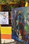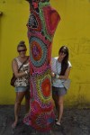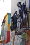 Da ich dieses bunte Viertel unglaublich toll finde, wollte ich mit den Mädels nochmals dorthin. Gesagt, getan. Athena, die wir hier in Buenos Aires auch wieder getroffen haben sowie der Schwede Stefan kamen auch mit. Das Wetter war toll und somit auch viel mehr Touris und Marktstände als das letzte mal. An jeder Ecke wurde man gefragt, ob man für ein Tango-Foto posieren möchte. Wir haben selbstverständlich dankend abgelehnt. Wir schlenderten durch die Gassen und bestaunten die farbenfrohen Häuser, Innenhöfe und Skulpturen, weche an den Häusern vorzufinden sind. Die Hauptattraktion ist der farbenfrohe Caminito, ein kurzer Fussgängerweg, der von Gebäuden aus Wellblech gesäumt wird. Einheimische Künstler stellen hier ihre grellbunten Malereien aus, was dem Ambiente noch mehr Charme gibt. In dem Viertel ist ausserdem der Fussballclub Boca Juniors zu Hause. Daher kann man hier auch überall Fussballsouvenirs kaufen.