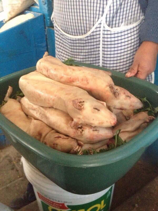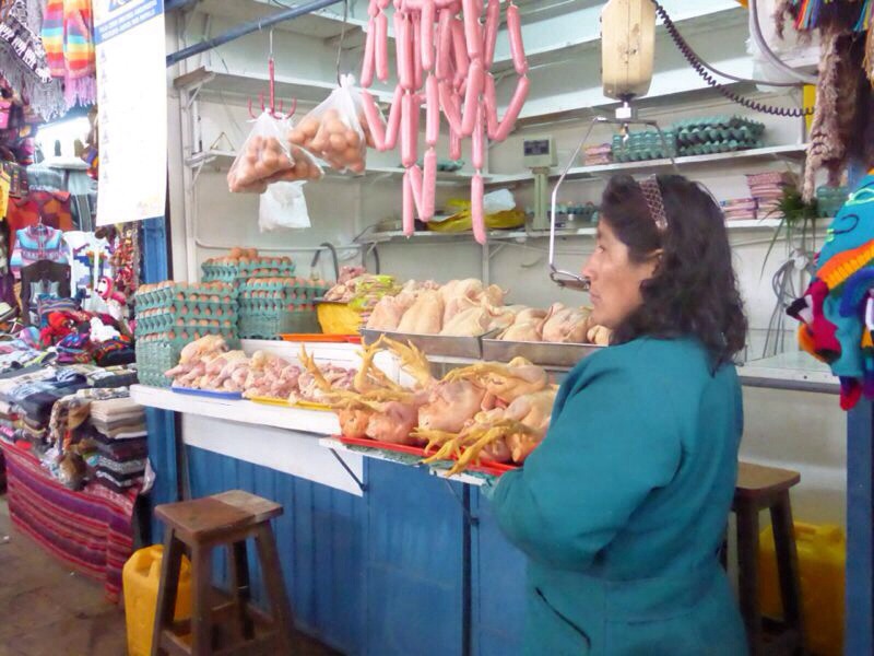 Am nächsten Tag (09.04.2014) besuchten wir den San Pedro Markt, wo unzählige Pullover, Schale, Decken und Souvenirs zu finden sind. Hier deckten wir uns mit den restlichen Souvenirs ein. Steffelyne gaben echt alles 😉 Auf dem Markt findet man zudem auch abgehakte Schweineköpfe, enthaarte Meerschweinchen (Delikatesse in Peru), diverse andere Fleische, Kräuter etc. Ihr könnt es euch etwa vorstellen, wie es dort gestunken hatte?!
