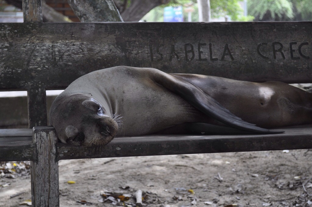 Um 7:30 Uhr mussten wir am Pier in Puerto Ayora sein. Von Galatravel erhielten wir je einen Sticker, welche für den Guide auf der Isla Isabela bestimmt war. Der Guide sollte uns somit erkennen und uns dann auf der Insel auf die richtige Tour mitnehmen. Sollte!! Wir waren dann mit der netten Ami-Familie auf der gleichen Schnorcheltour. Die Tour war genial. Wir sahen unteranderem die kleinsten Pinguine der Welt. Die waren echt goldig. Zudem machten wir einen kleinen Spatziergang auf einer Lava-Insel, wo einmal mehr Seelöwen zu sehen waren. Auf dieser Tour lernten wir noch zwei nette und lustige Mexikaner kennen. Zurück am Pier von Isla Isabela hat sich herausgestellt, dass wir und die nette Ami-Familie auf der falschen Tour waren. Der Guide flippte aus und machte die Ami-Familie zur Sau. „You have to pay for this tour!! You didn’t book this tour!!!“ Alle waren etwas verwirrt, da der Guide auf einmal so aggressiv war. Wir versuchten zu schlichten, jedoch ging das daneben. Als wir den Voucher gezeigt hatten, schnauzte er uns auf einmal auch noch an. Wir hätten genau gewusst, welche Tour wir gebucht hatten und was diese Tour alles beinhaltet. Als wir dann jedoch gefragt hatten, warum sie am Pier keine Namen herunterlesen, waren sie auf einmal still. Also hier sehen wir noch viel Steigerungspotential 🙂 Nach dem Mittagessen war die ganze Gruppe (3 verschiedene Gruppen) komplett und unser Fahrer meinte, dass unser Guide keine Lust mehr hatte und er jetzt unser Guide sei. Wir waren über diese Nachricht nicht traurig. Nach 10 Minuten Fahrt kehrte der Fahrer jedoch wieder um. Unser Guide hatte es sich doch anders überlegt (ist ja schliesslich auch sein Job!). Wir gingen zu den Flamingos und einer Schildkröten-Auffangsstation, als wäre vorher nichts vorgefallen. Am späteren Nachmittag, als es gerade anfing zu regnen, hatten wir unser Zimmer im Hostel Coral Blanco bezogen.