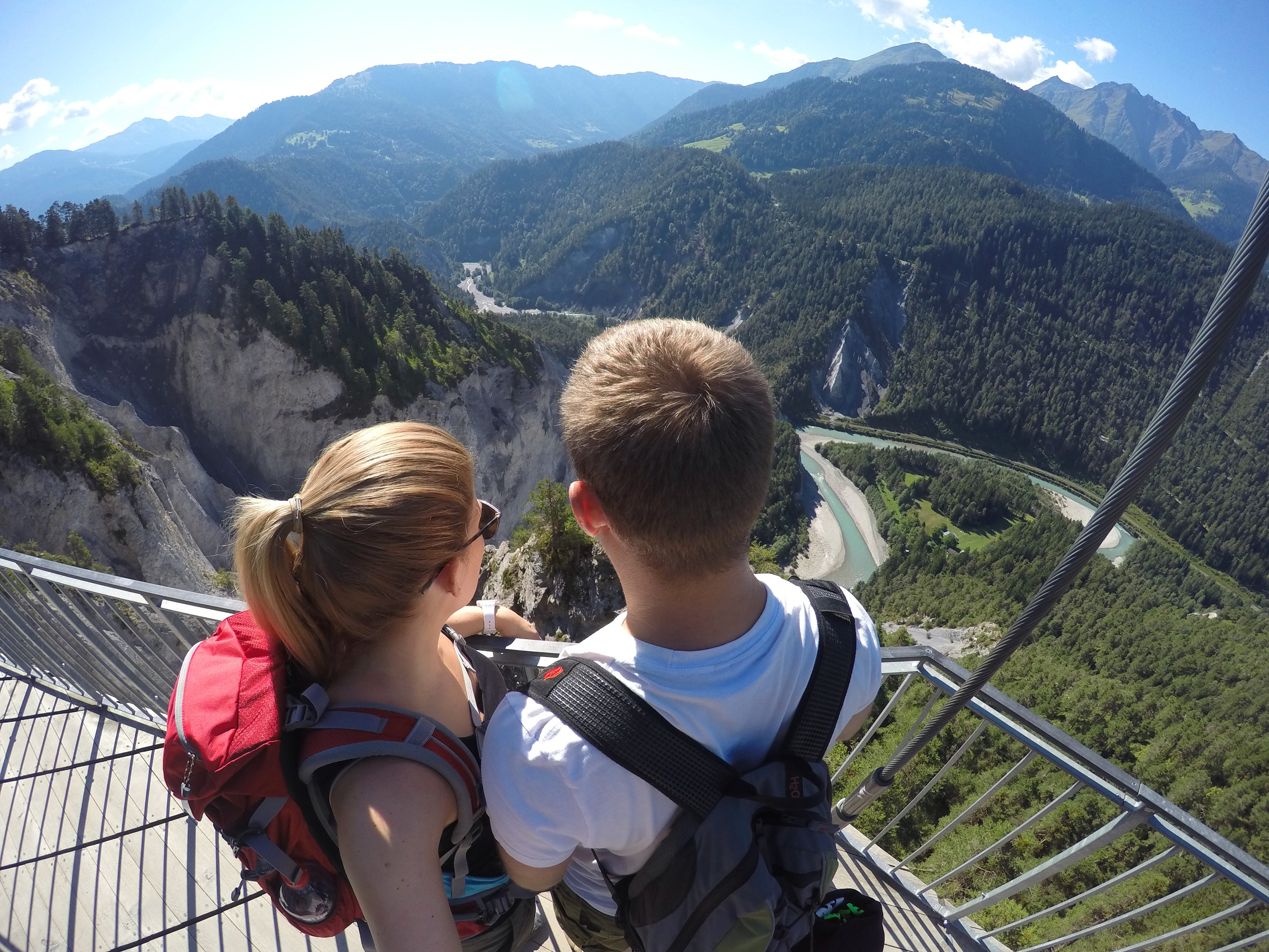 Unsere Wanderung startete ab Flims Waldhaus Caumasee und führte ca. 15 Minuten durch den Wald. Um 8.30 Uhr war es noch sehr ruhig und es waren kaum Touristen anzutreffen. Schon von weitem erblickten wir das klare, türkisfarbende Wasser durch die Bäume funkeln. Ein Aufzug brachte uns zum idyllischen Caumasee. Danach ging es weiter in Richtung Conn zur Aussichtsplattform „Il Spir„, welche in die Rheinschlut hinein ragt und dadurch einen weiten Blick auf den Fluss frei gibt. Auf dieser Plattform wurde es uns etwas mulmig zumute, jedoch lohnte sich der faszinierende 180-Grad-Blick über die Rheinschlucht (Ruinaulta). Nach einem kurzen Rast schlenderten wir gemütlich weiter zum Crestasee. Rund um den See gibt es unzählige versteckte Plätze inkl. Feuerstellen – leider galt noch immer das Grillverbot. Die Abkühlung im Crestasee war ein traumhafter Abschluss unserer kleinen Wanderung. Das Postauto brachte uns dann zurück nach Flims, wo wir dann in der Surselva Brauerei einkehrten.