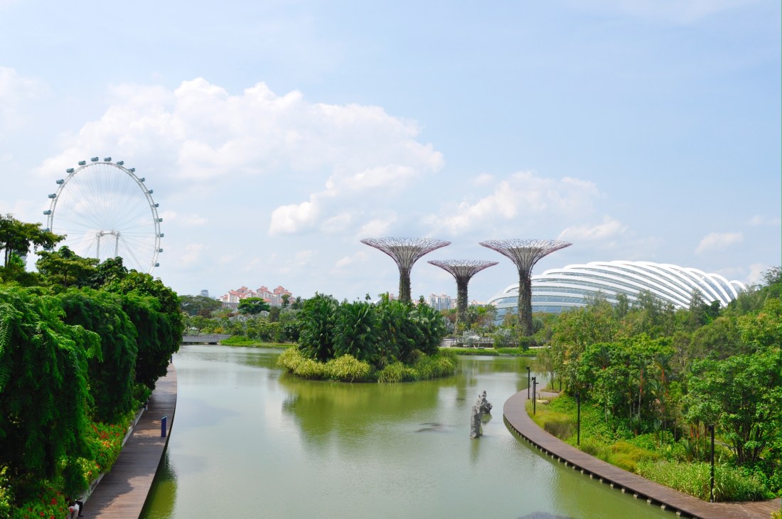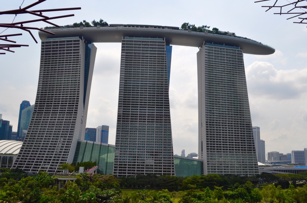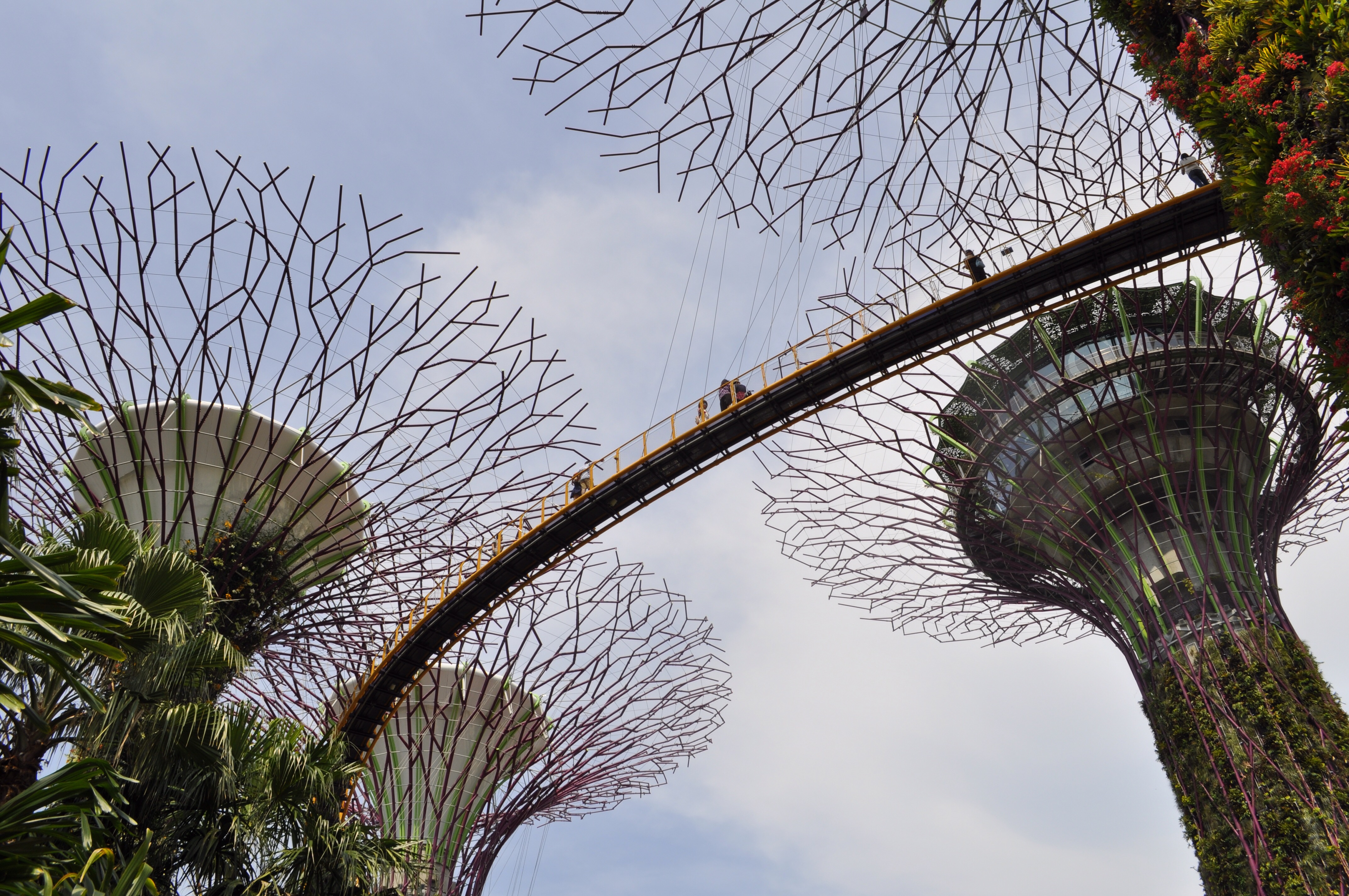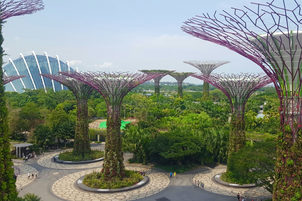 Direkt an das Marina Bay Sands Hotel erschliesst sich ein riesiges Parkgelände mit jeder Menge tropischer Planzen, die Gardens by the Bay. Bekannt ist dieser Park vor allem durch die Super Trees – pflanzenbewachsene Stahlgerüste in Baumform, die zwischen 25 und 50 Metern hoch sind. Die Gardens by the Bay sind ganzjährig geöffnet und auch Abends aufgrund der Licht- und Musikshow sehenswert.