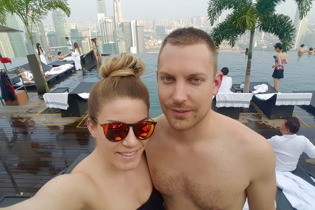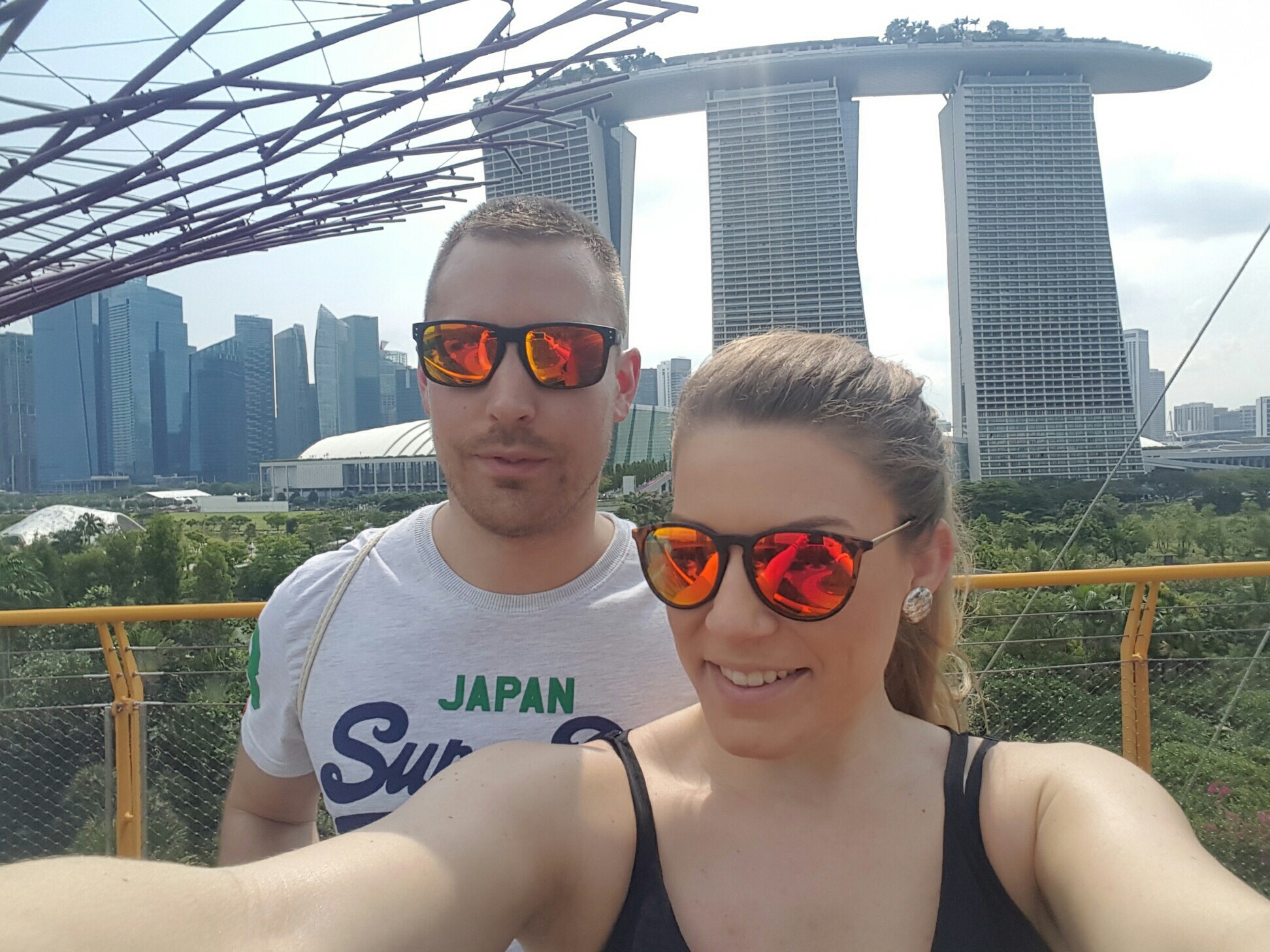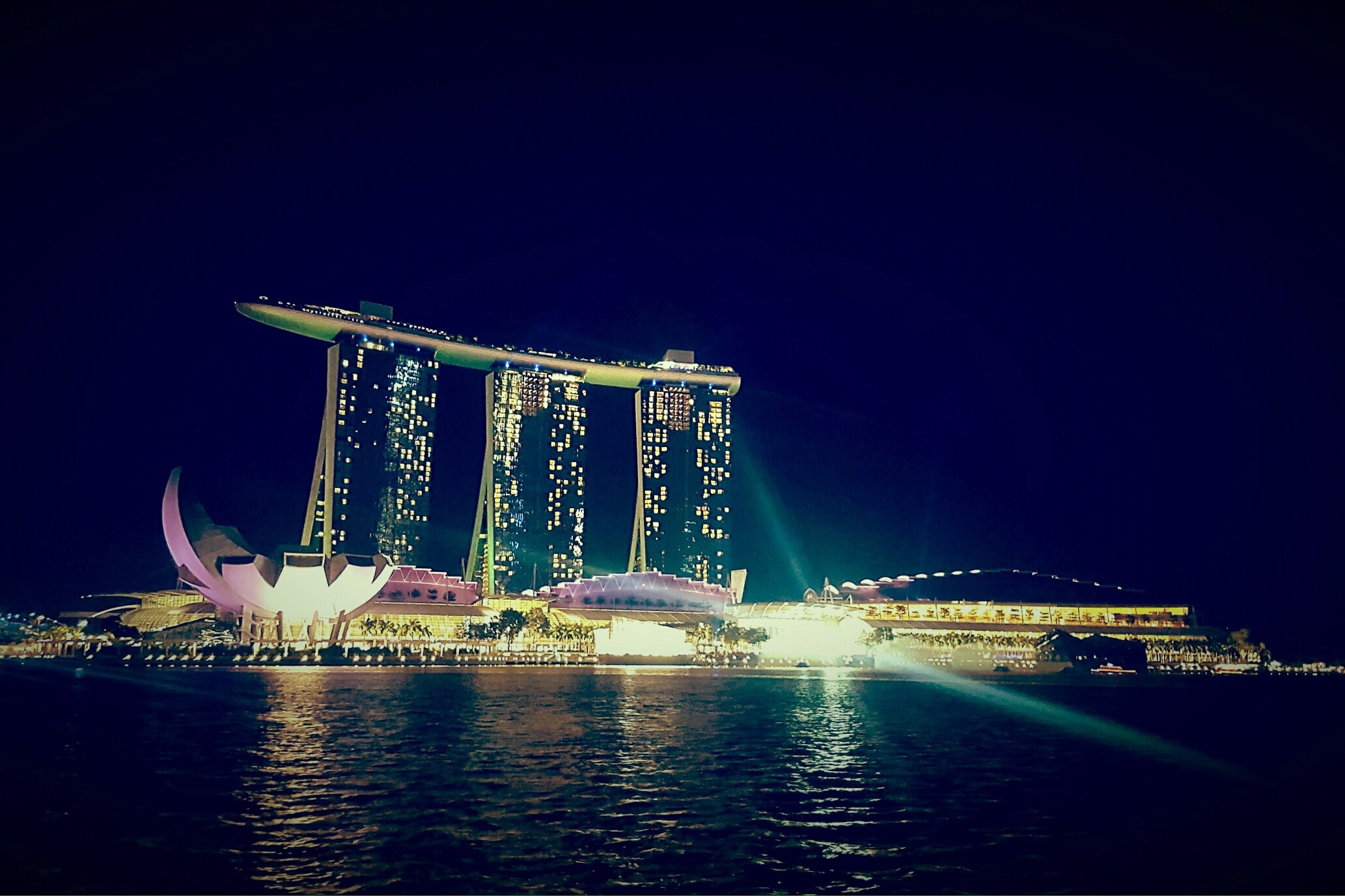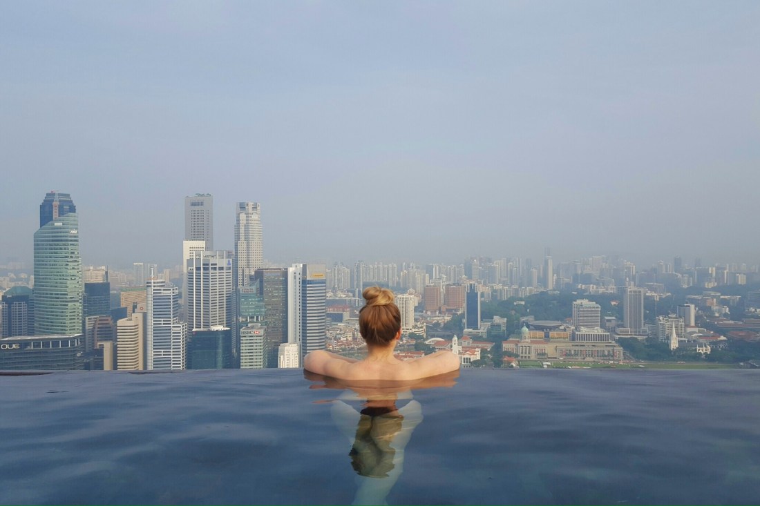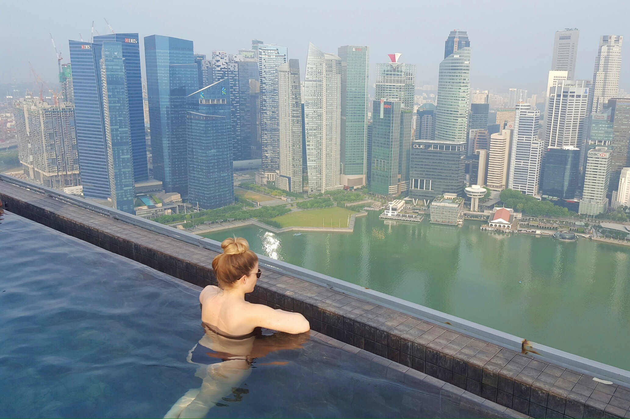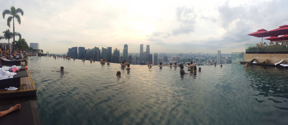 Da unsere Zeit begrenzt war und wir nur eine Nacht in Singapur eingeplant hatten, liessen wir es uns nicht nehmen im bekannten Marina Bay Sands Hotel zu nächtigen. Dieses Hotel ist sicherlich das Hotel mit dem berühmtesten Infinity Pool der Welt, welcher sich ganz oben auf dem Hotel befindet. Zudem ist dieses Hotel aufgrund der ungewöhnlichen Form eine Sehenswürdigkeit und dadurch auch so etwas wie das Wahrzeichen der Stadt geworden. Das Hotel ist an für sich schon beeindruckend, aber was uns fasziniert hat, das war der Ausblick. Von unserem Zimmer aus konnten wir auf die Marina Bay schauen, inklusive der Skyline der Stadt – ein Wahnsinns-Ausblick, gerade auch am Abend während die Lichtershow stattfindet.