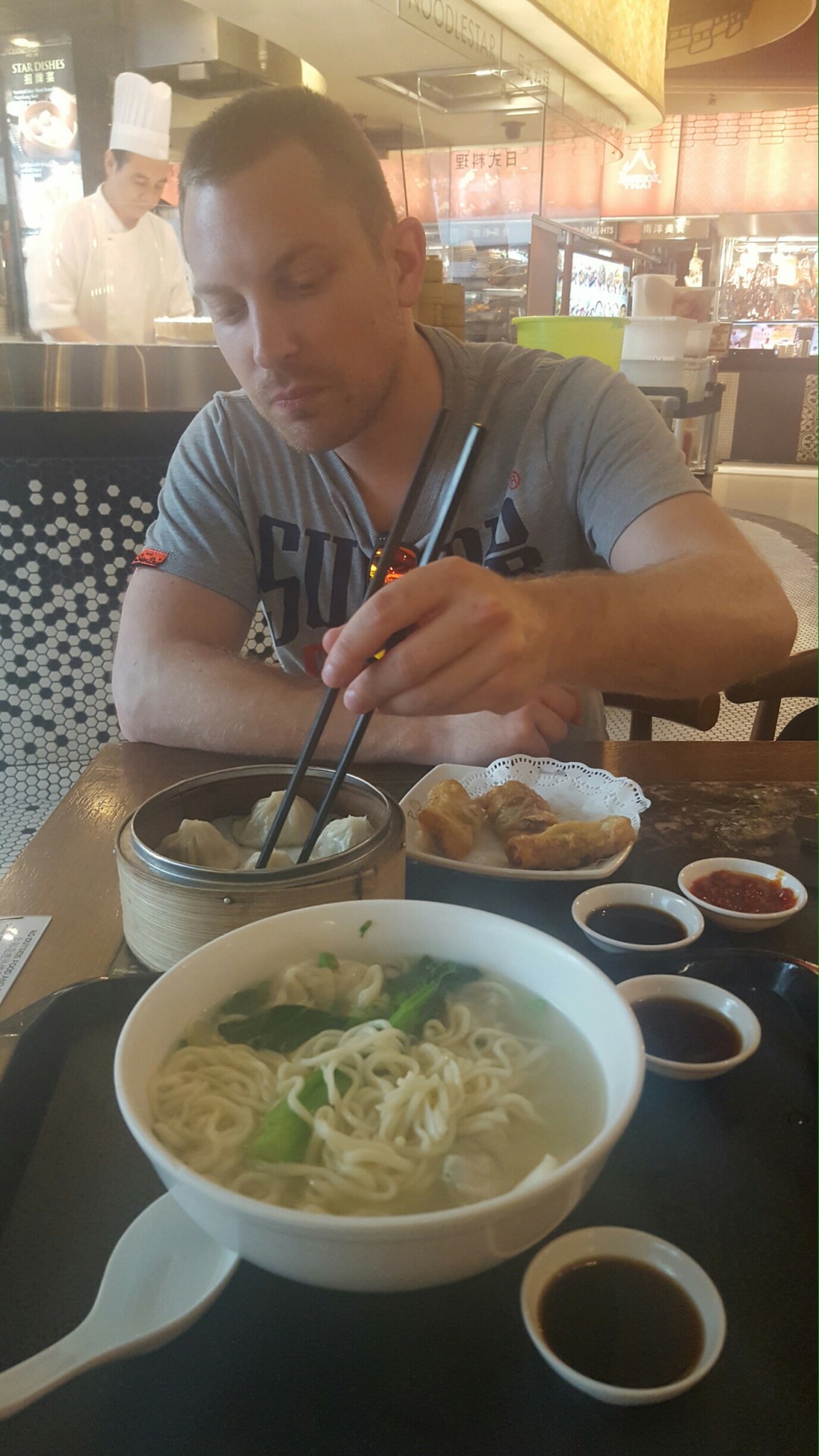 Wer im Marina Bay Sands Hotel übernachtet und sich die Umgebung anschaut, kommt zwangsläufig an dem riesigen Einkaufsmall vorbei. Hier findet man alles, was das Herz begehrt oder besser gesagt was das Sparkonto plündern lässt. Von Gucci, Prada bis zu LV findet man hauptsächlich teure Shops, welche mein Urlaubsbudget definitiv sprengen würden. Daher war für uns der Foodcorner und die verschiedenen Restaurants mehr von Bedeutung. Im Foodcourt der Mall gibt es gutes, preiswertes und vor allem lokales Essen. Nach einer gefühlten Ewigkeit haben wir uns endlich für ein Menü entscheiden können. Es war super lecker und machte uns auch noch satt. Zudem kann man sich im Einkaufszentrum nach einem Spaziergang, dank der Klimaanlage, etwas abkühlen.